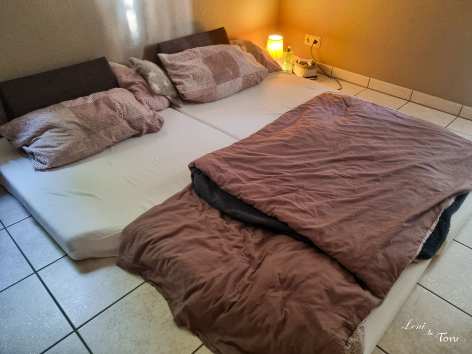 Es ist schon praktisch, wenn man als Camper umzieht. Nicht nur, dass unser Campingtisch mittlerweile als Esstisch in unserem Noch-Wohnzimmer steht - seit gestern haben wir auch unsere Wohnmobilmatratzen hier in der Wohnung. Da wir in Kappeln ein noch ziemlich neues Bett haben und unser bisheriges auch gar nicht in das kleine Zimmer dort passen würde, haben wir unser altes Bett jetzt über Kleinanzeigen verkauft. Wir liegen nun also vorübergehend auf unserem Matratzenlager. Es kann nicht mehr lange dauern, bis wir komplett - also für die restliche Dauer des Umzugs - in unseren Gustav ziehen werden. Wenn hier mit der nächsten Fuhre noch die Couchen und der Fernseher rauskommen, wird es soweit sein....