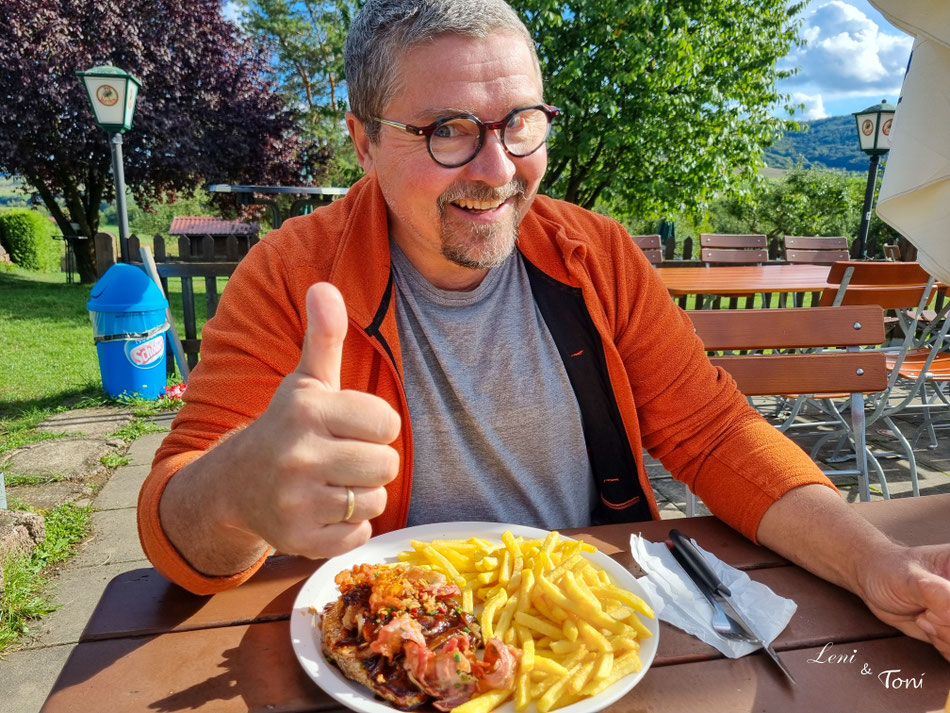 Als er das Foto eben gesehen hat, hat er direkt wieder von dem Essen geschwärmt und ich muss auch sagen - ich hatte einen Burger - es war wirklich sehr sehr lecker. In den Kommentaren unter dem Video ist das Essen auch von vielen gelobt worden. Ein Abstecher auf den Forellenhof lohnt sich also nicht nur wegen der Alpakas 🦙